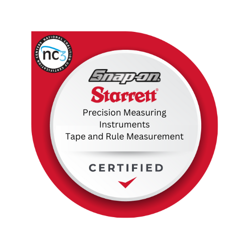 Precision measuring is the cornerstone of quality in products and services many people rely upon each day. Starrett, Snap-on, and NC3 combined their industrial experience and expertise to create a certification that includes hands-on training on instruments that are vital to engineering, manufacturing, aerospace, power generation, and natural resources, to name a few. Those who earn this certification will be proficient in the use of a variety of instruments ranging from tapes and rules to calipers and micrometers.